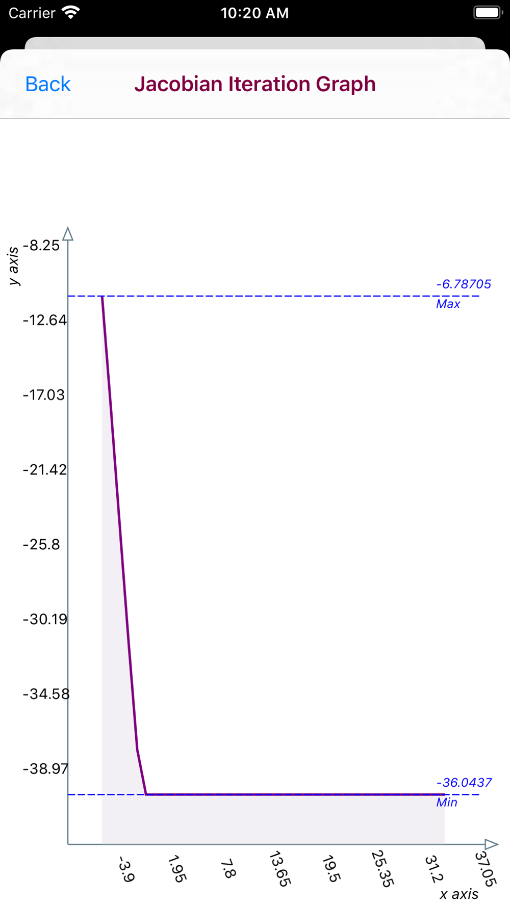 The Jacobi Iteration Calculator IPhone app allow for the easy entry of either a 2x2, matrix, the vector and estimate and validates the entered matrix, vector and estimate for the validity as a Jacobi matrix for iteration calculation.