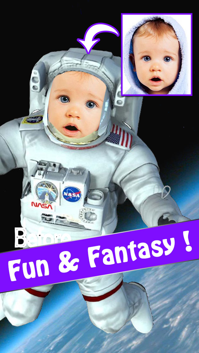 ◆ Become a superman, zombie, president, movie star, astronaut, body builder, santa claus or other famous characters.