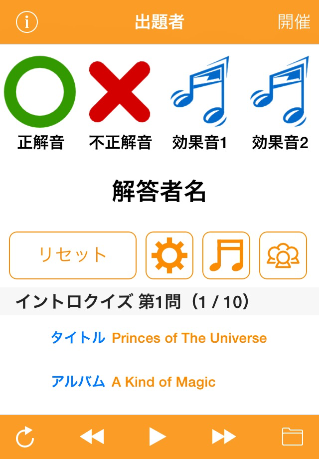 ・曲の再生中に解答者がボタンを押すと、自動的に停止します。