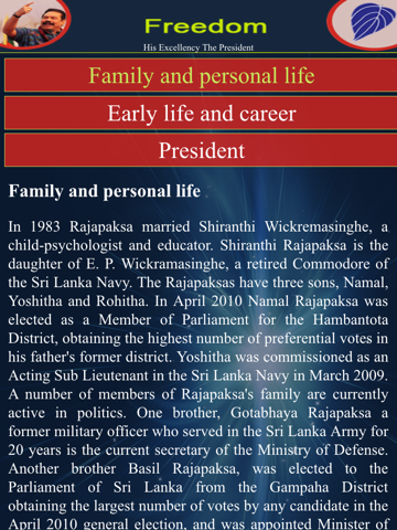 Authentic data on finger tips - This App becomes library, calendar & organizer to His Excellency Mahinda Rajapaksa’s followers for knowing their leader’s authentic data, activities & schedules
