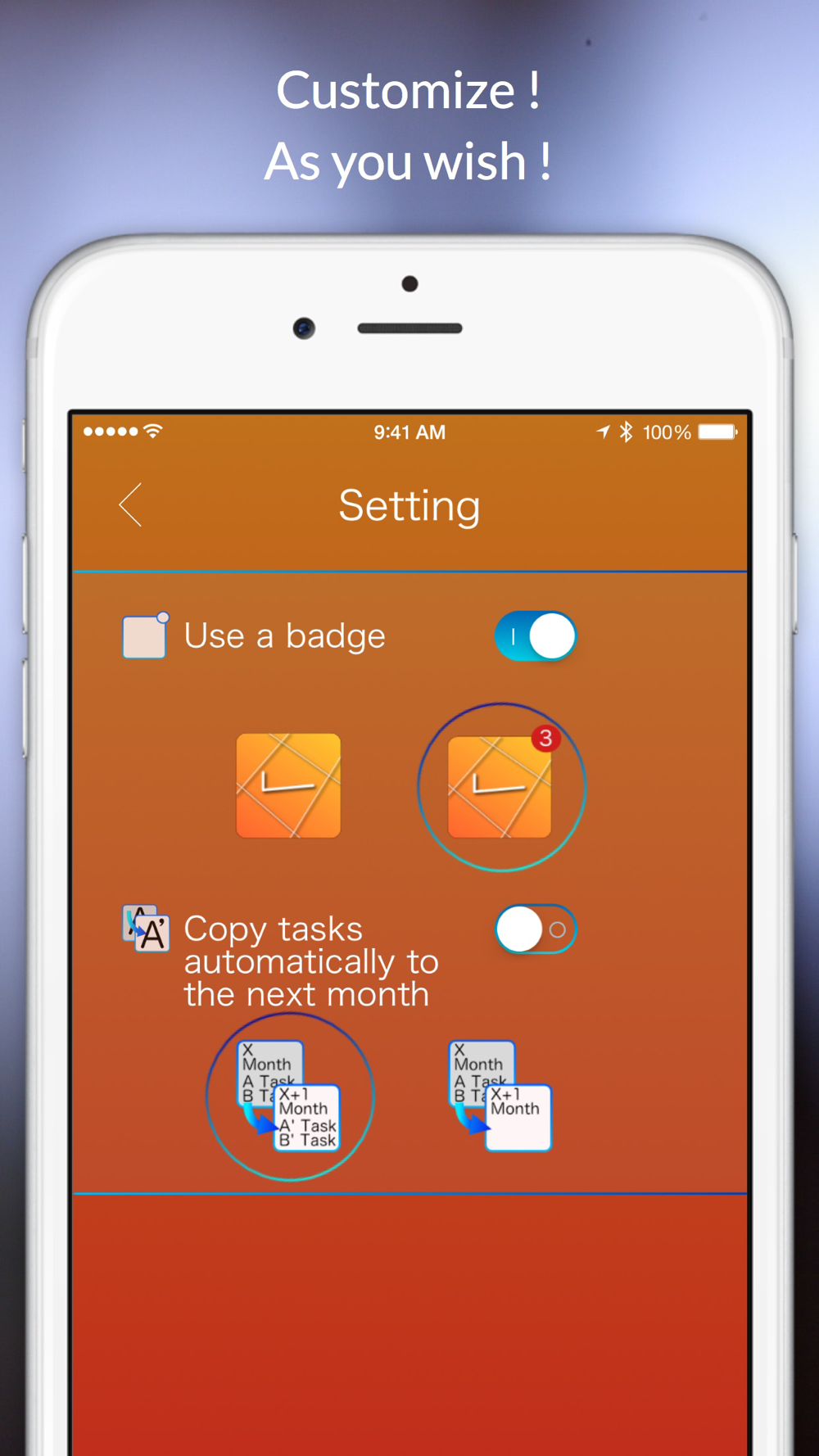 -You can check the number of remaining tasks of today with an icon badge.