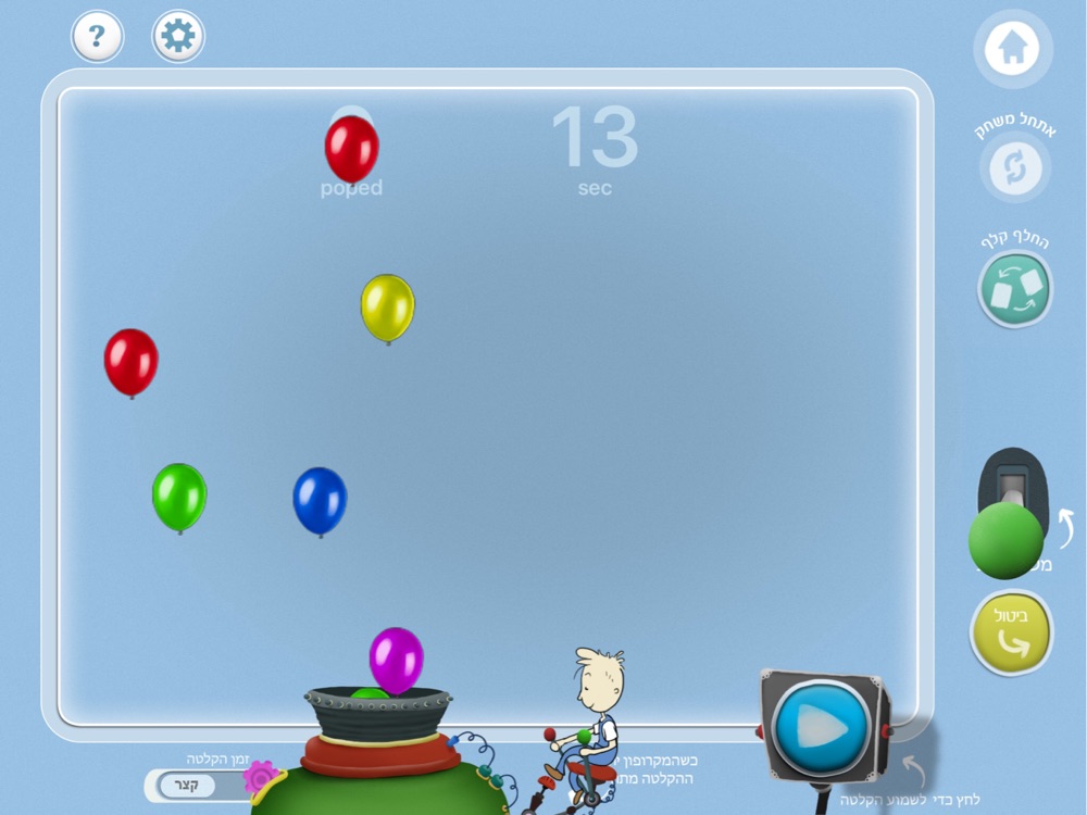 5 משחקים – רכבת, קוביות, פיצוץ בלונים, חשיפת תמונה, מכונית מרוץ.
