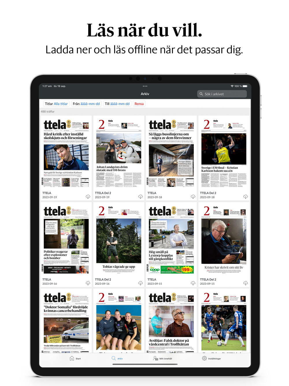E-tidningen ger dig tillgång till all vår lokaljournalistik - läs alla reportage, granskningar och analyser i din mobil eller surfplatta, när och var du vill. Utöver tidningens delar får du även tillgång till alla ordinarie bilagor digitalt.