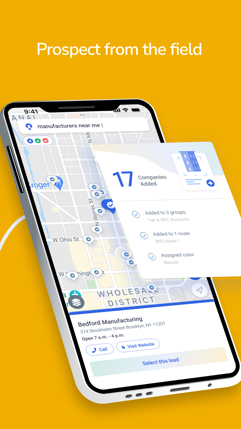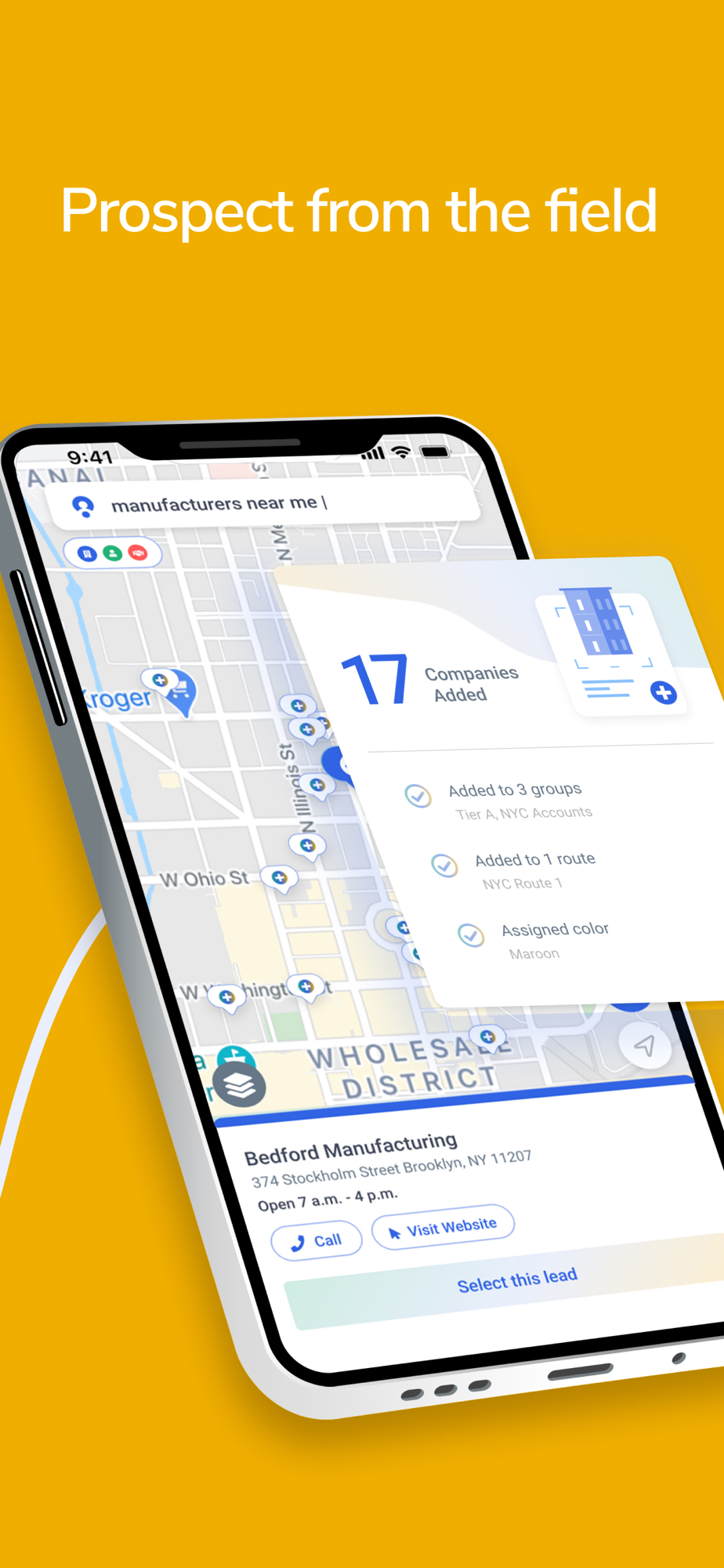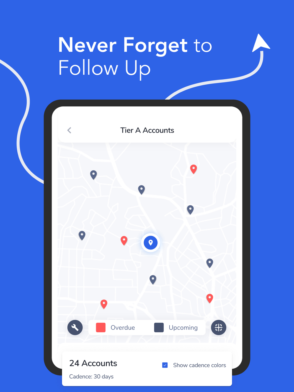 - Lead Generation: Find nearby prospects to add to your route on the fly or make up lost time from a cancelled appointment