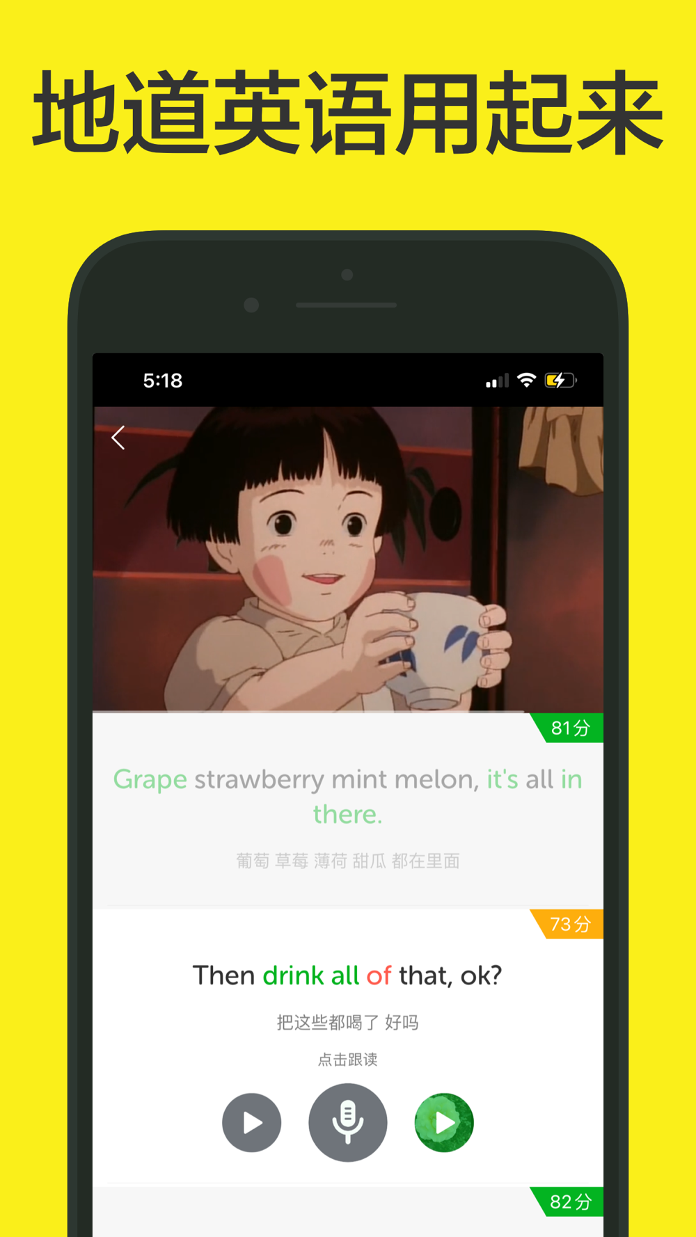 每日定时发布精彩的电影,各难度都有覆盖,挑选自己喜欢的每日练习,先看无字幕的,多尝试听懂,然后跟读配音,完成作品后再来听,坚持一段时间就会发现自己听力和口语的提高。