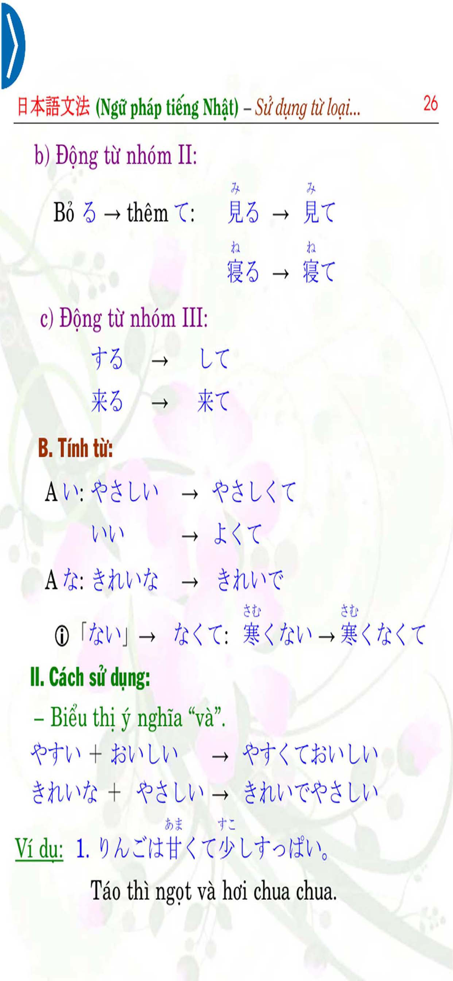Tiếng Nhật Bản là một ngôn ngữ cũng khá hấp dẫn đối với người Việt. Vì vậy chúng tôi biên soạn quyển sách “Ngữ pháp tiếng Nhật (日本語文法) – Sử dụng từ loại hiệu quả nhất” giúp bạn đọc hiểu biết sơ lược về ngữ pháp tiếng Nhật ở trình độ sơ cấp nói chung và cách sử dụng từ loại quả nhất nói riêng. Sách gồm có 3 phần chính: