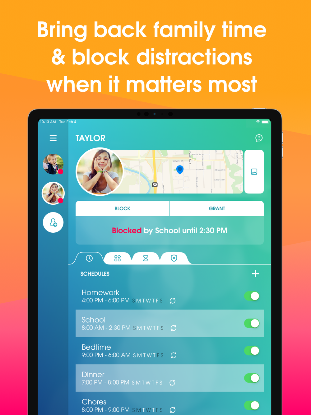 • Block Schedules – Automate your family’s daily routine