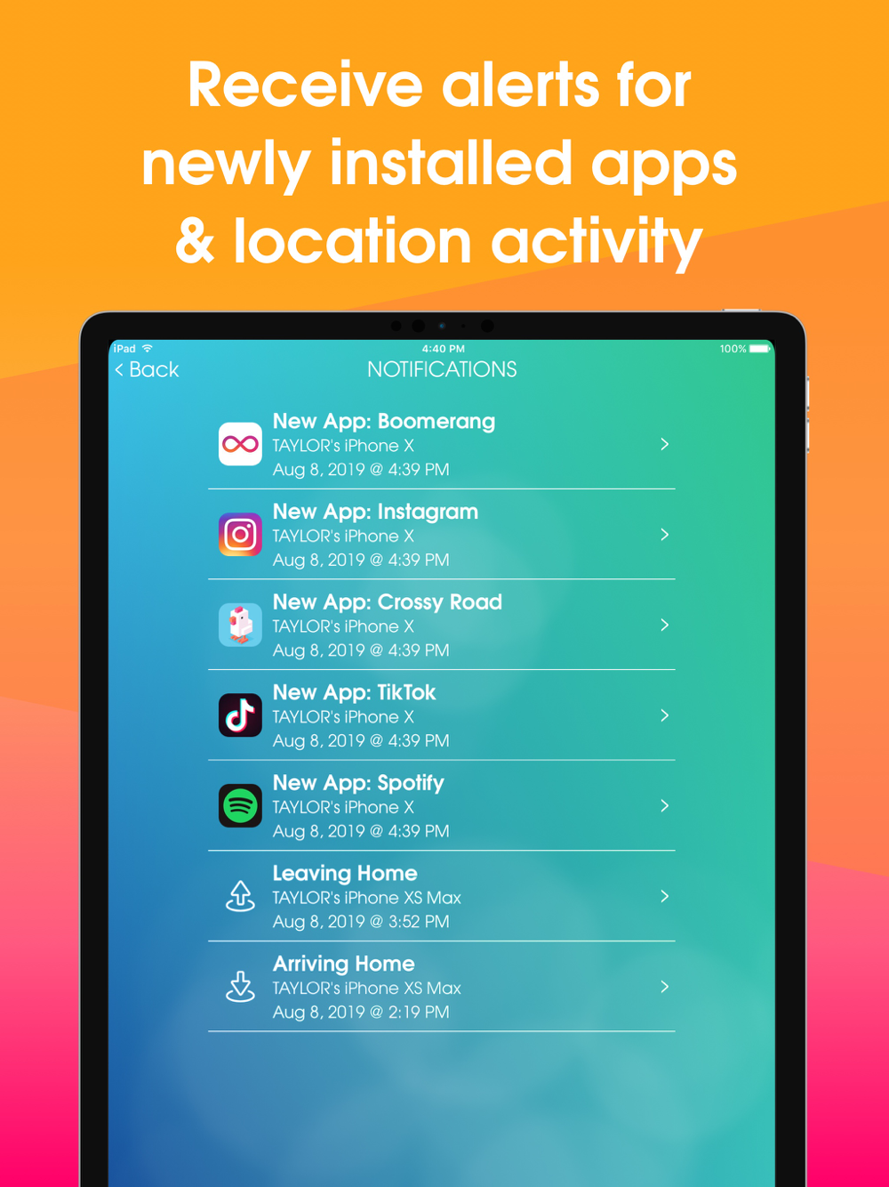 • New App Alerts – Receive alerts when new apps are installed on your child’s device