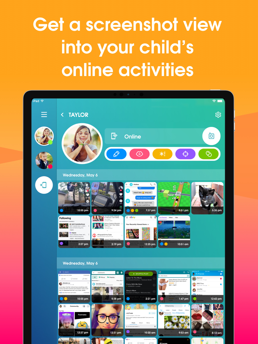 • View – Capture automated periodic, on-demand or gallery views of your children’s online activity, all encrypted for safety.