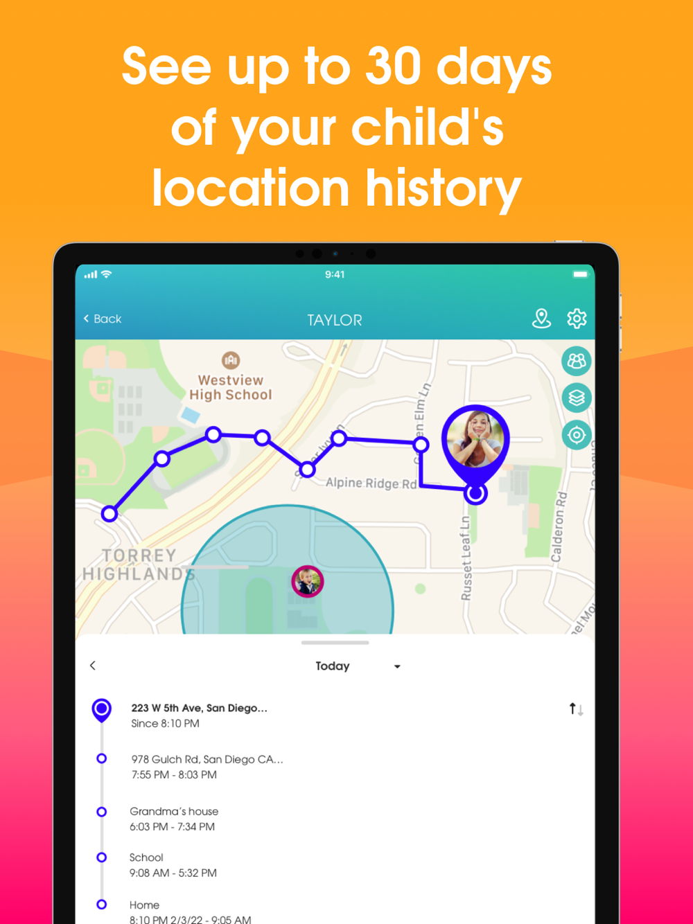 • Geofencing with Places – create GPS geofences around specific locations and receive real-time alerts when their kids leave and arrive at home, school or any set zone