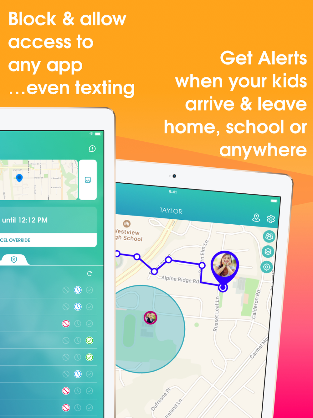 • App Blocker – Block internet, text messages, and apps at-a-touch