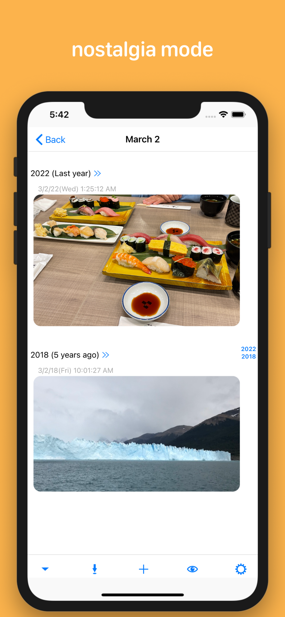You can immerse yourself in the memory of what you did, what you wrote, and what kind of photos you took years ago (can be used as a 10-year diary)