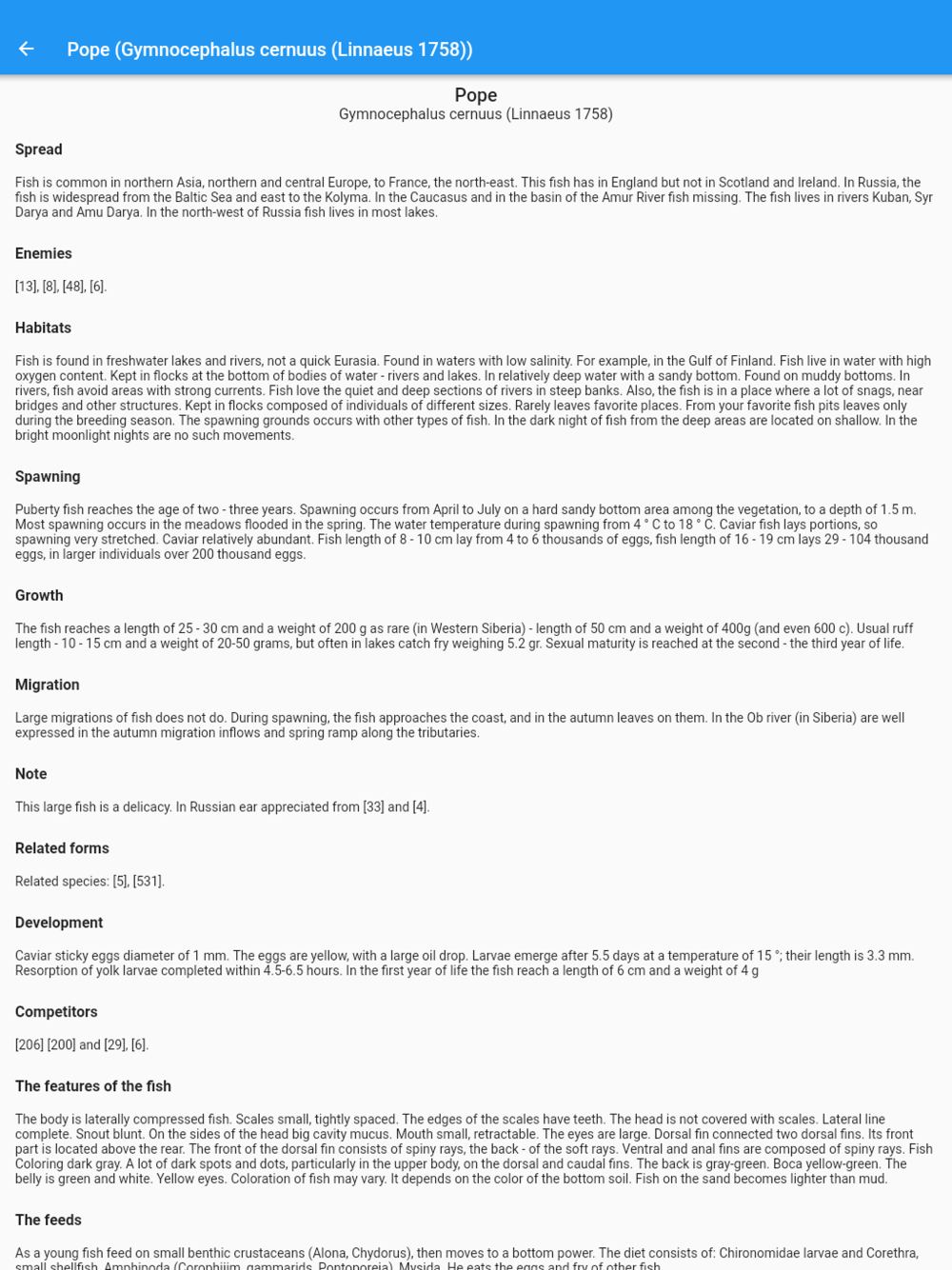 This application is connected with mp-fish.com service and other "MP Fish Planet" applications, where you can find additional information for selected fishes: