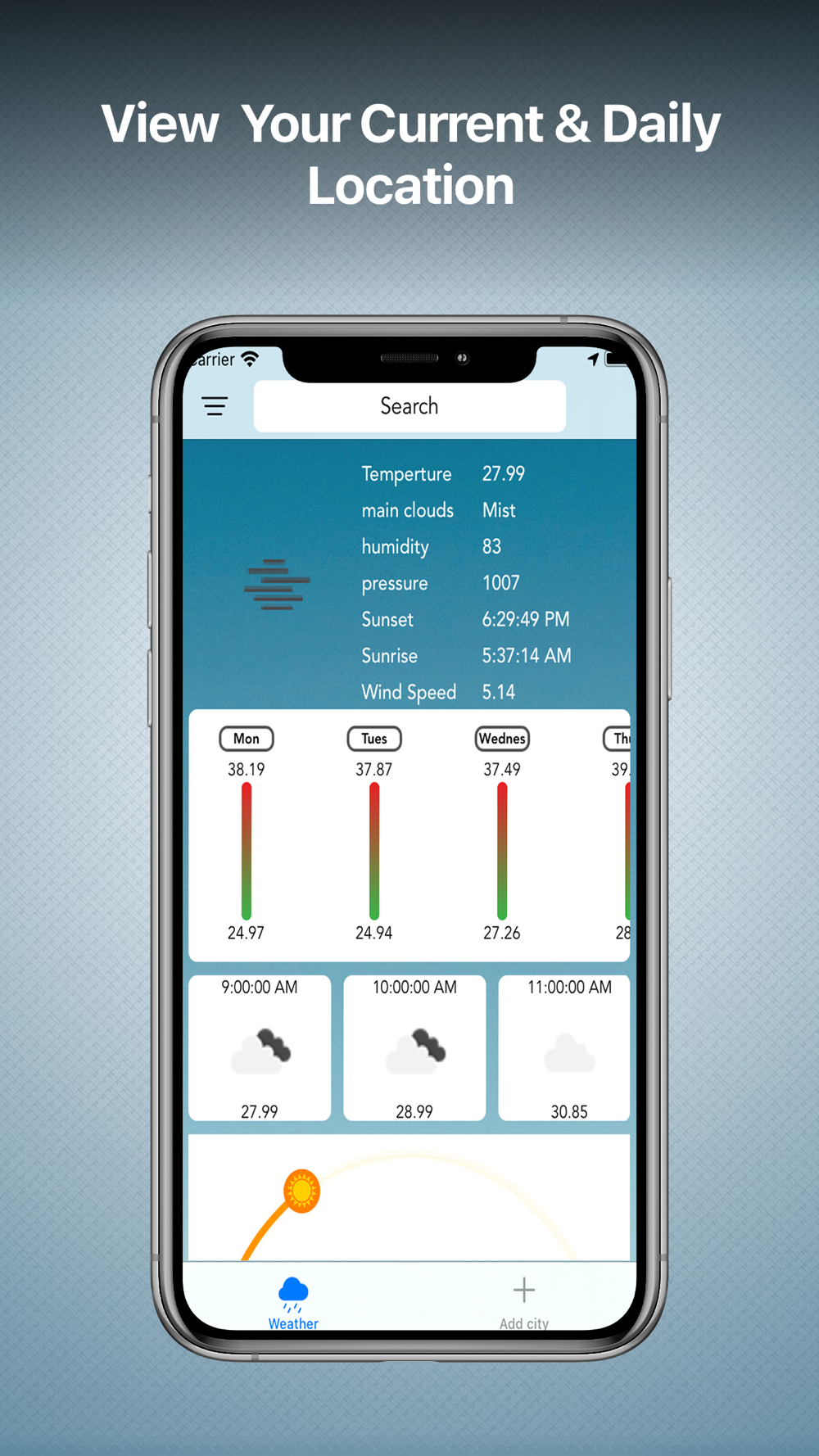 Weather Application provides detailed weather for all cities worldwide, it searches your address and locates cities quickly, and provides the current temperature, current humidity, pressure, and wind speed and direction, in addition, seven days weather forecast. The Widget is 100% without any charge.