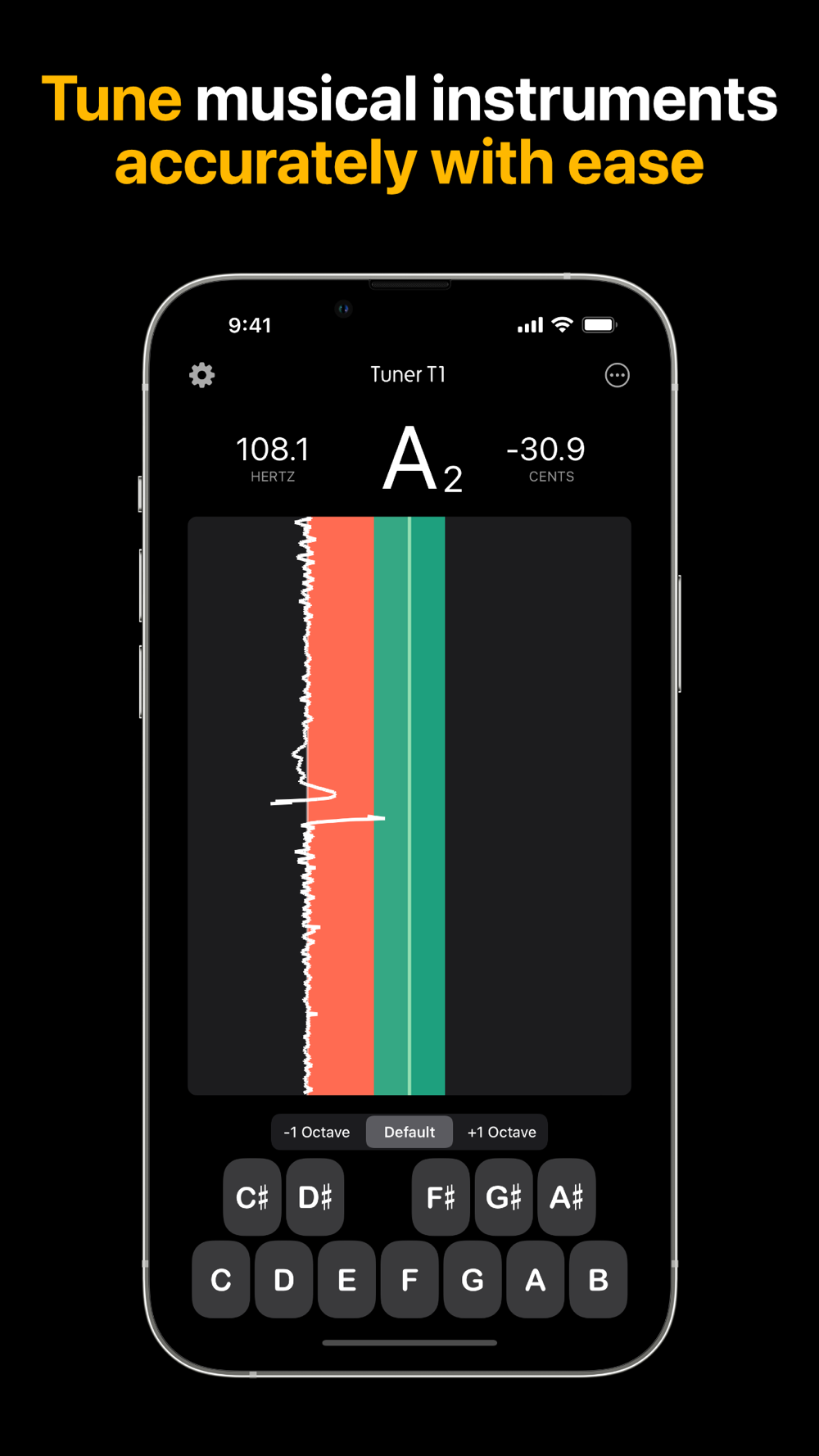 • Live pitch graph displays the exact pitch, note and deviation in realtime.