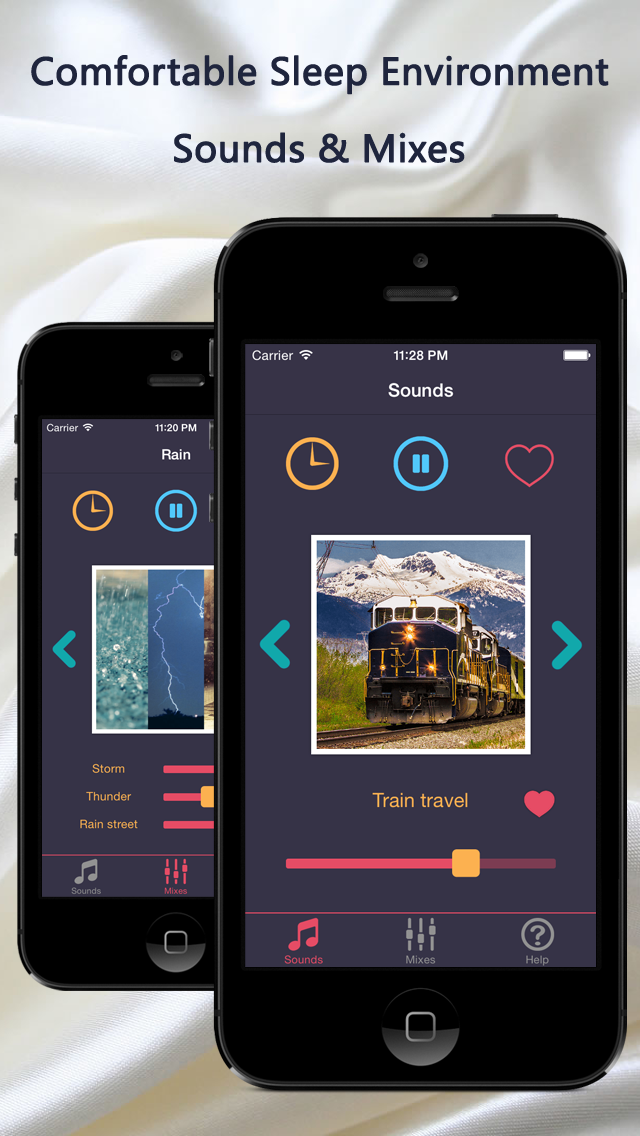 This App provides an advanced set of high quality ambient sounds, premixed for perfect sleep enhancement. The sounds are recorded and enhanced to relax and make you sleep. They isolate, create a relaxed environment, and put you into a cyclical sleep pattern.