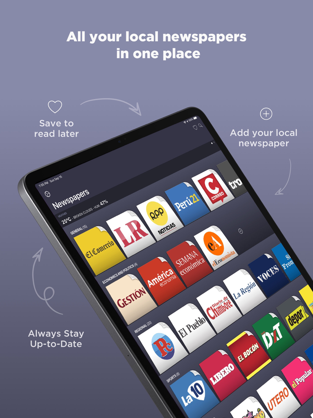 New improvements and changes requested by users:◉ Modern design assembled to the new iOS style, support DARK MODE. We have renewed the design of the Shelves and Daily cover pages.◉ We improved the marquee quick information.◉ Now you can add newspapers to your wish in any shelf.◉ You have the chance to mark a note as favorite (pressing the heart) so to read it at any other time.◉ You can order newspapers or shelves to your wish, just pressing them.◉ In the newspapers view, we renewed the image of the rest of the newspapers of the same category in the lower bar.