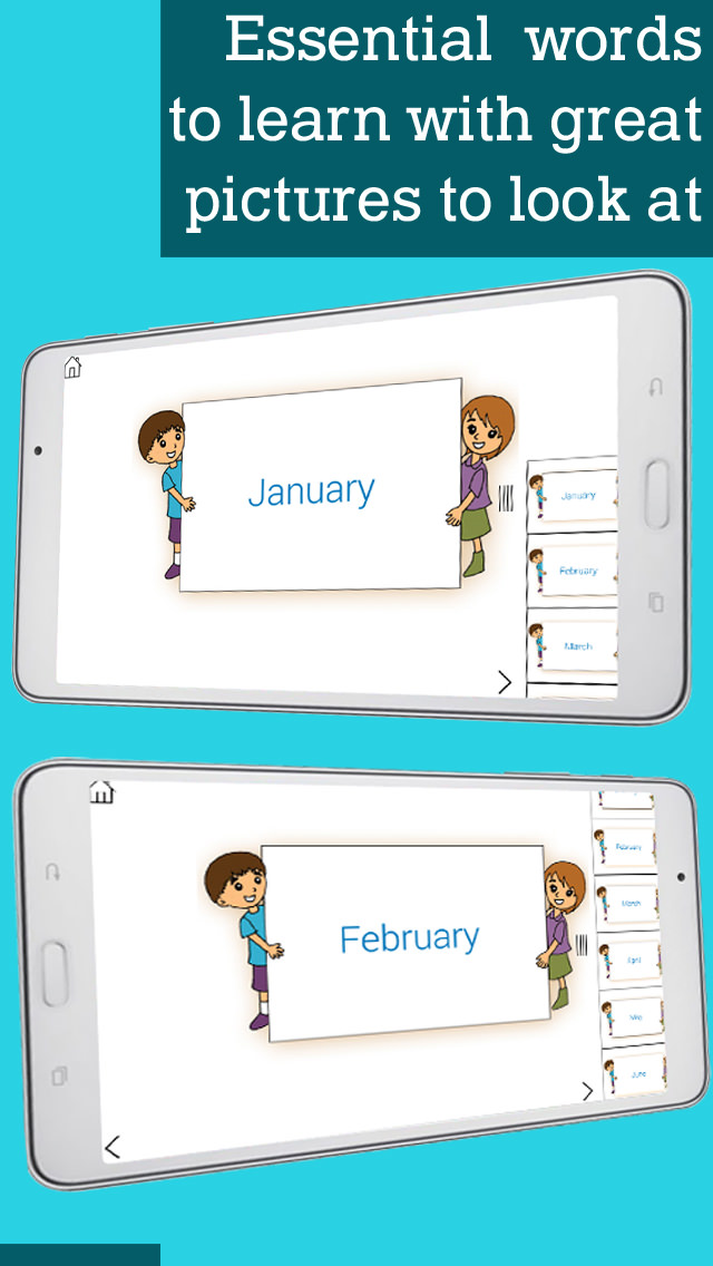 Learn Numbers, Time, Days and Months for kids will always guide your kids in positive manner with enthusiastic appreciation sounds and floating balloons!