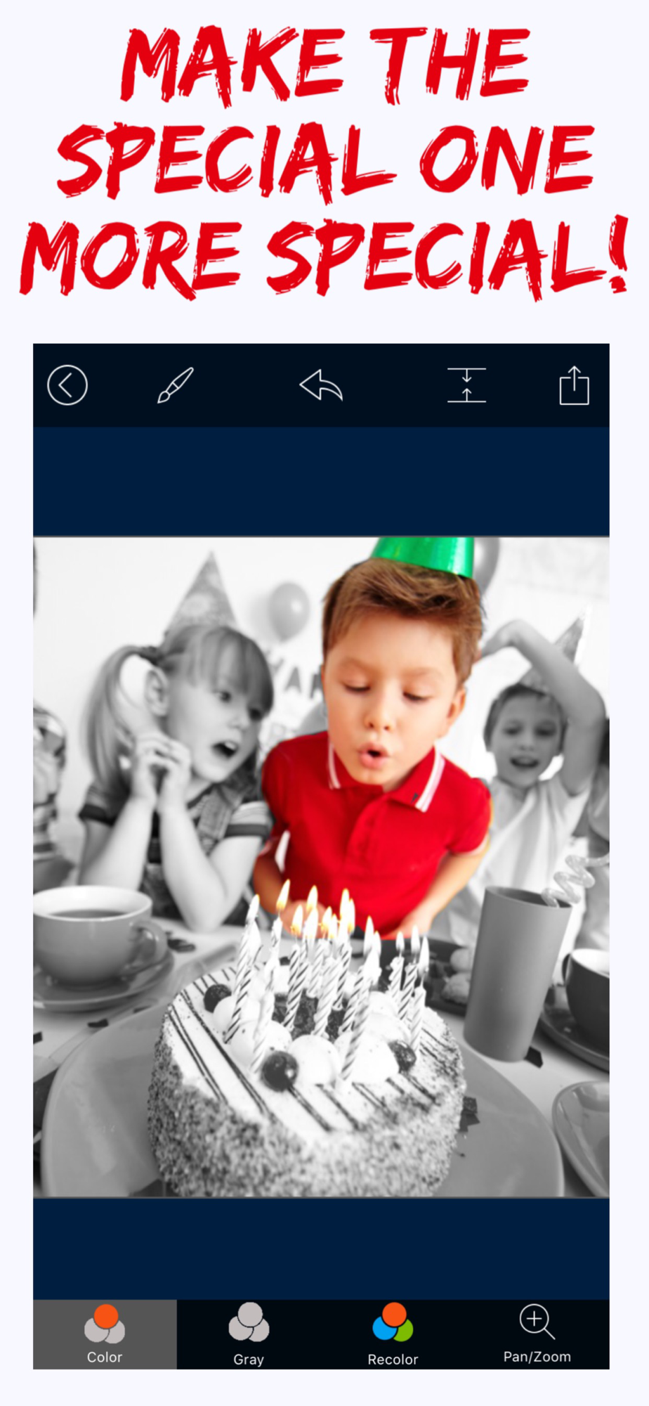 [+] Color/Gray: Apply original color or gray on any part of the photo.