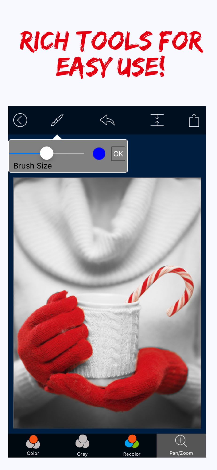 [+] Undo : Undo the errors easily, and use the Gray button to redo the gray color.