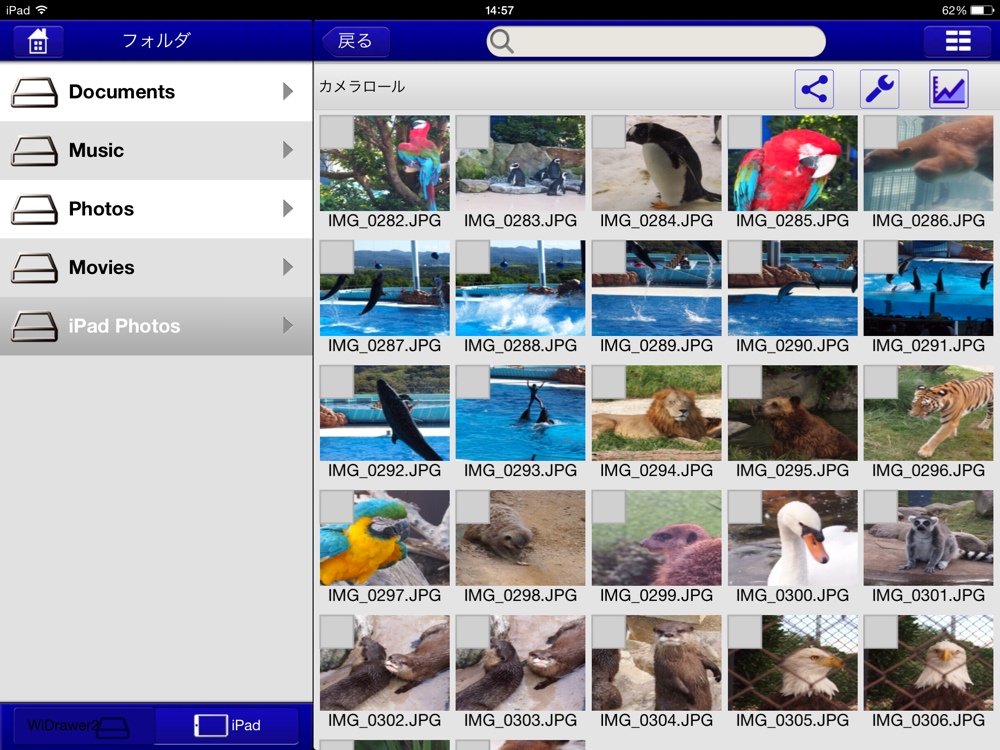 ・カメラロールへの一括コピー(jpg,png,bmp,gif,tif,mov,mp4,m4v)