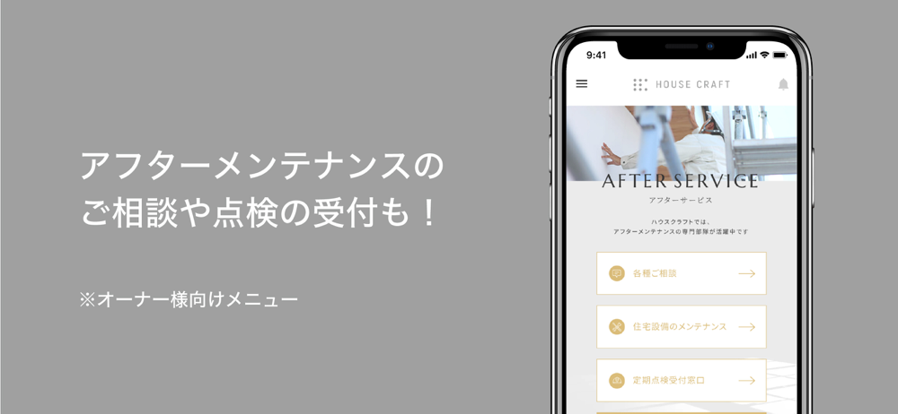 また、お住まいの方にはアフターメンテナンスや定期点検の受付もアプリから申込可能です。