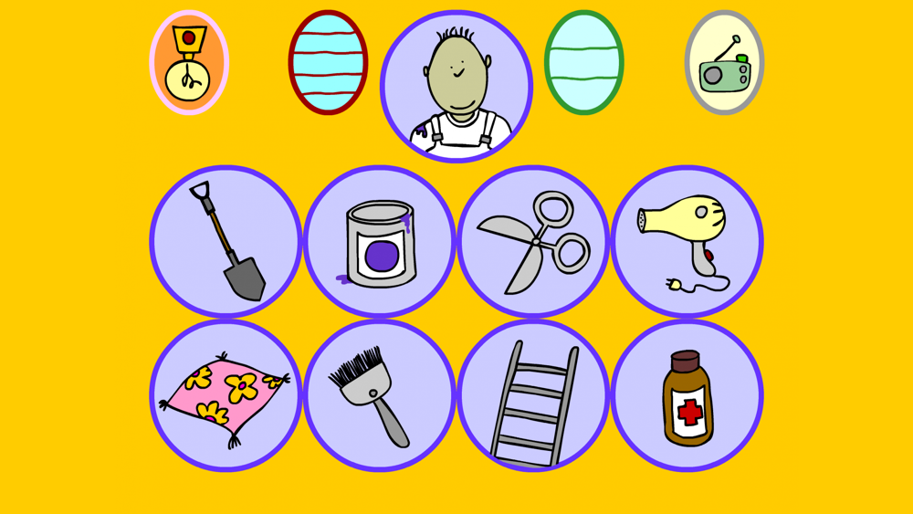 Professionals need their tools. Do you know what belongs to who? 9 mini matching games, different at each play.