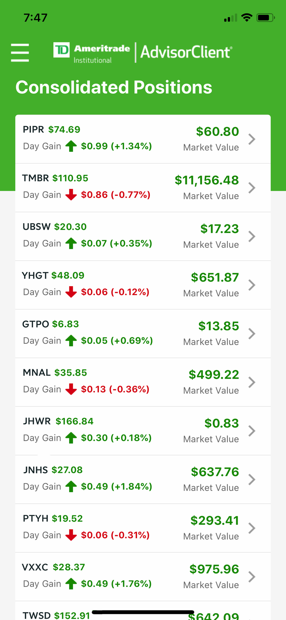 TD Ameritrade’s AdvisorClient Mobile allows you to stay connected and keep up-to-date on your investments, when you’re on the move. Use it to gain access to account information, watch lists, and research wherever you are from your iPhone. Created with a focus on convenience, AdvisorClient Mobile offers quick and easy access to your account balances, positions, transaction history and more.