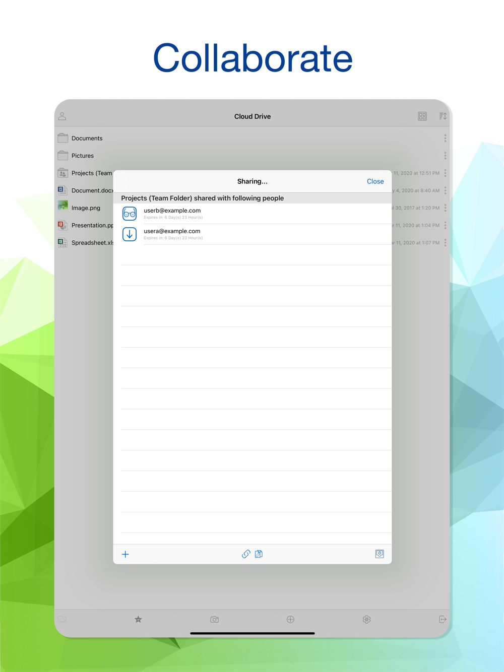 Cloud Client is a generic white label client that connects to your enterprise or service provider's cloud storage solution. In the Access Point field, you will type in your service provider or enterprise solution's Access Point first. After that, you can use Cloud Client to access the files and folders from your iOS device