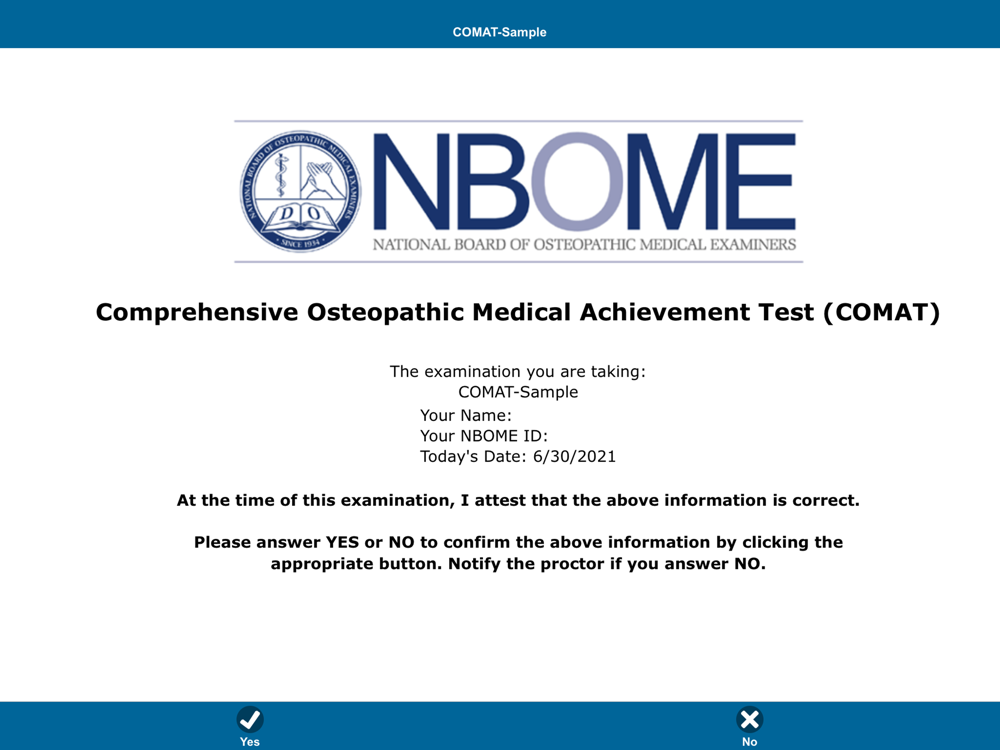 This application allows you to take the NBOME COMAT® examination using your Apple® iPad®.