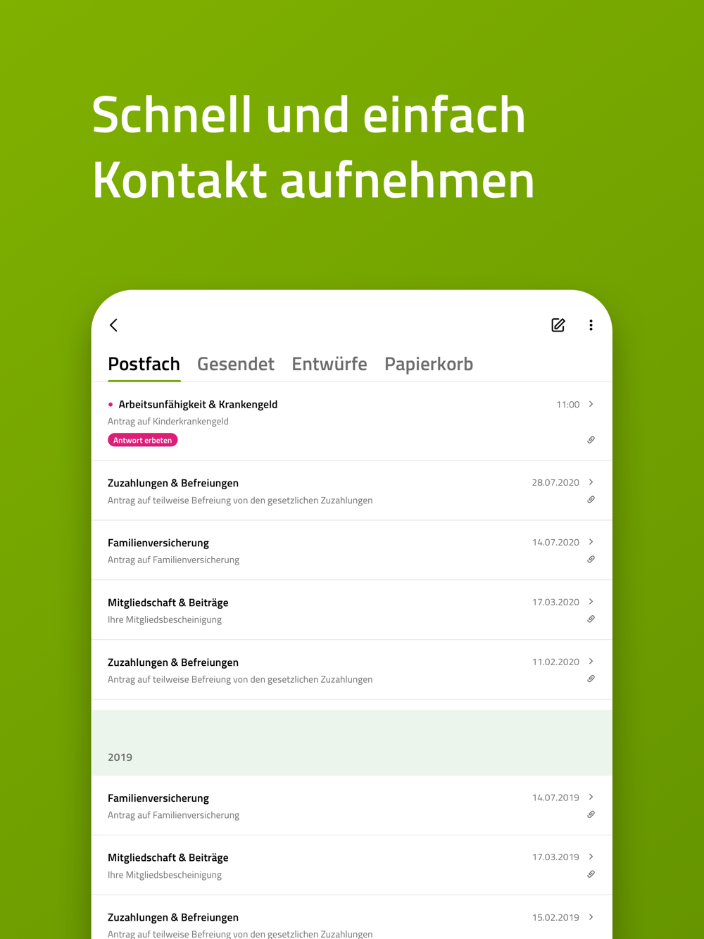- Postfach für Ihre sichere Kommunikation mit uns