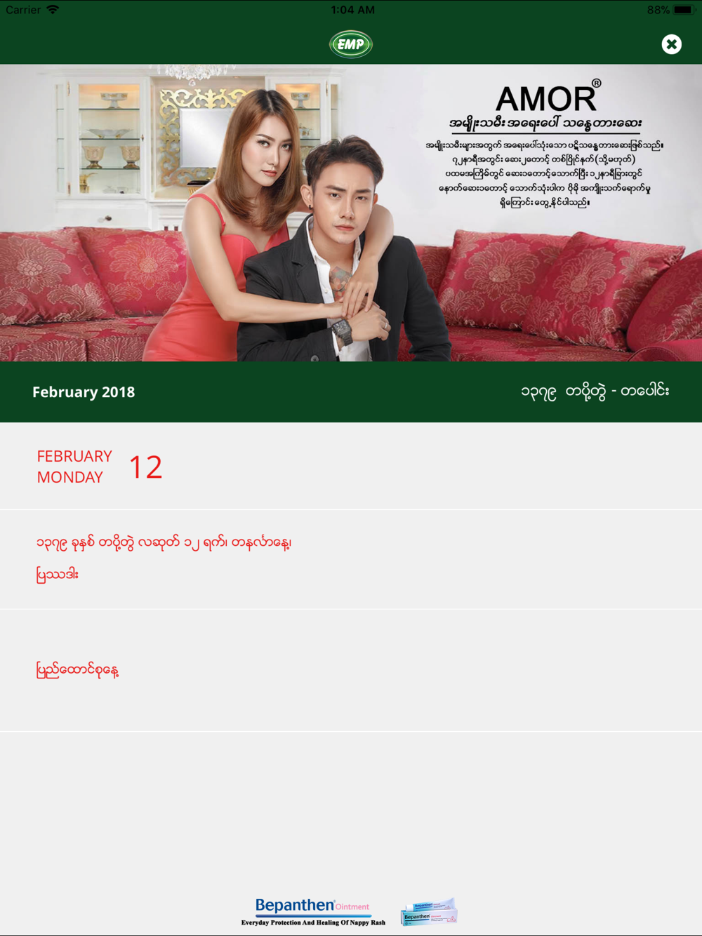 EMP Myanmar Calendar is a Myanmar-English calendar for the year 2015 from Excellence Medicare & Pharmaceutical Co., LTD.