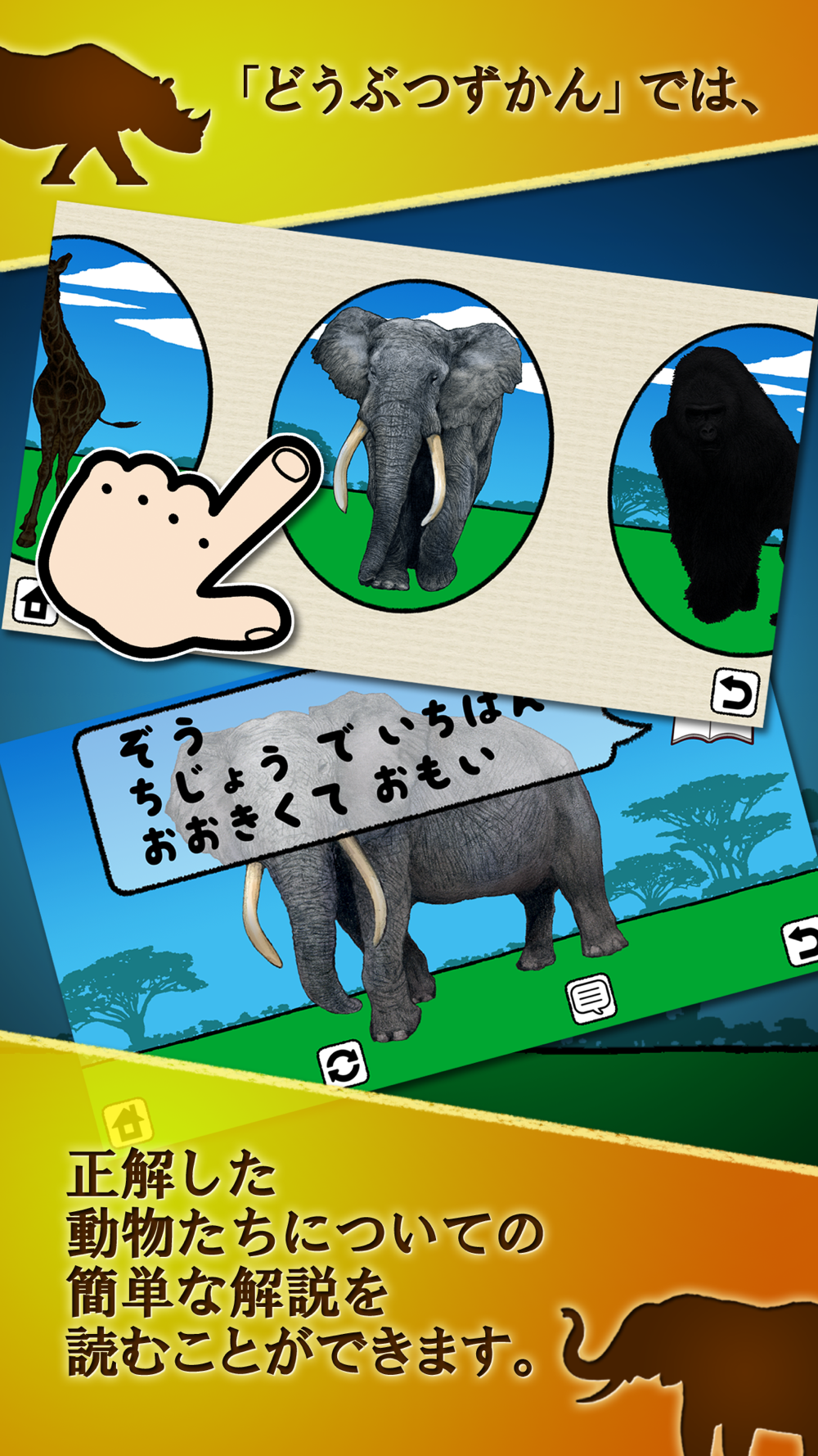 動物たちの簡単なトリビア(おもしろ豆知識)も学ぶことができます。