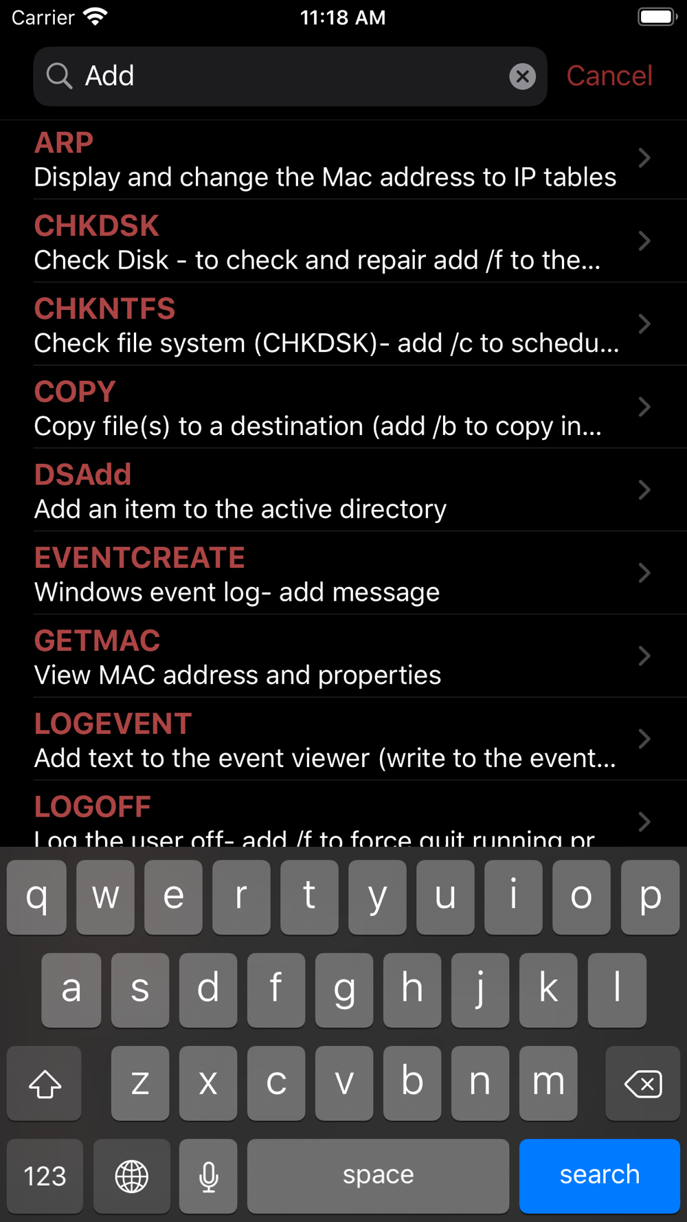 CmdRef is a full, offline, searchable Windows CMD dictionary.