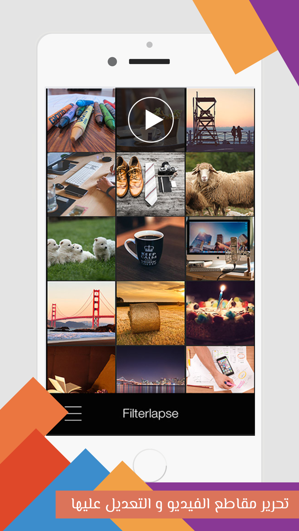 تطبيق مونتاج ومحرر فيديو احترافي , للتعديل والتاثير على مقاطع الفيديو بكل سهولة ومع امكانية تعديل الالوان والاضاءة في الفيديو .