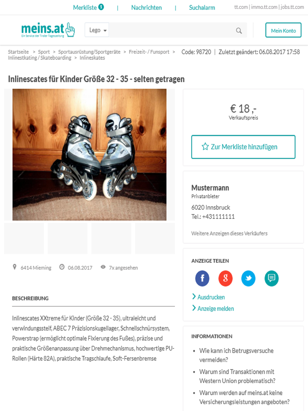 Damit keine ärgerlichen Missverständnisse entstehen, empfehlen wir, dass du die Sachen, die du kaufst, einfach abholst und direkt bezahlst. Meins.at zeigt dir nur Angebote in deiner Nähe, denn die schönsten Sachen sind oft ganz nah.