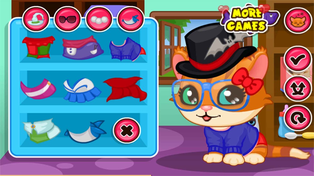 This is a very, very fun little game, Tom Cat loves her little master to accompany him to play for his bath, so she satiate wear beautiful clothes! Let's try it and see who's the best looking dress! Let her try some fancy clothes in the collection and choose the perfect outfit for her. Do not forget a hat and accessories. You'll have fun.