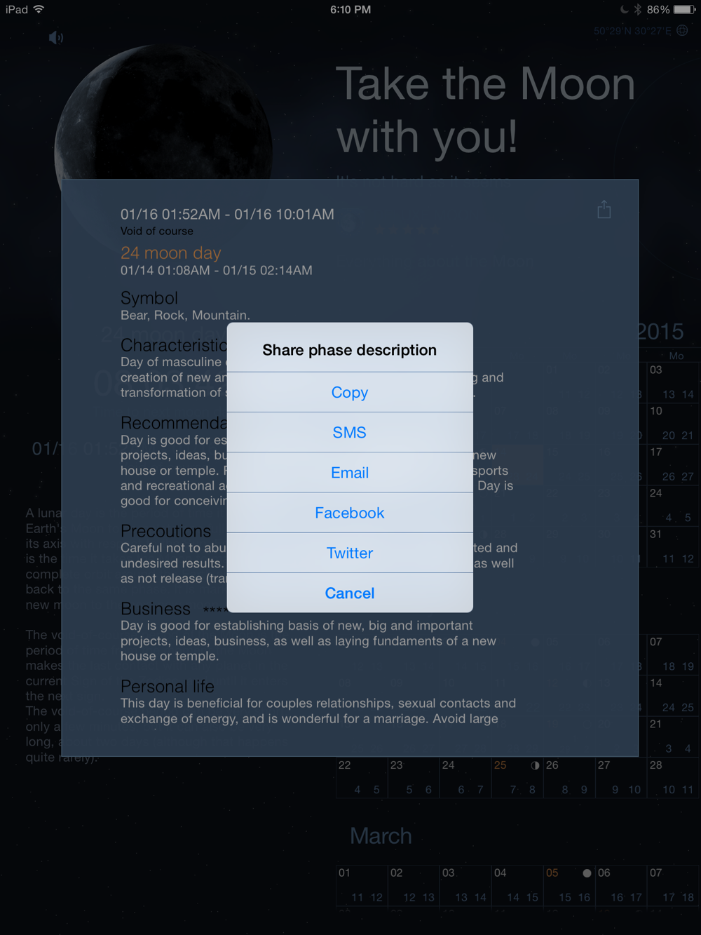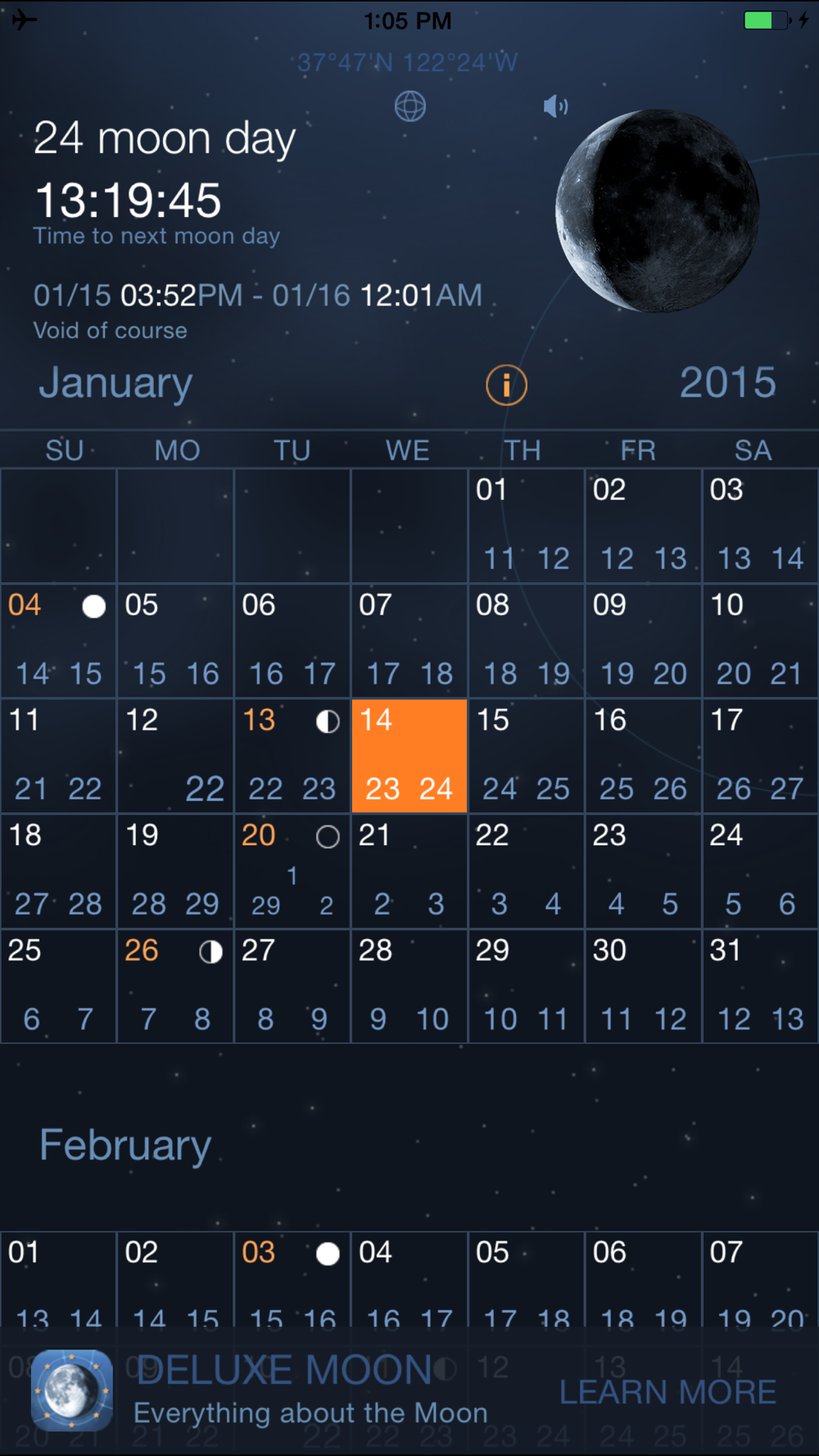 If you want to learn about the Moon more, please refer to Deluxe Moon Pro for iPhone or Deluxe Moon HD for iPad.