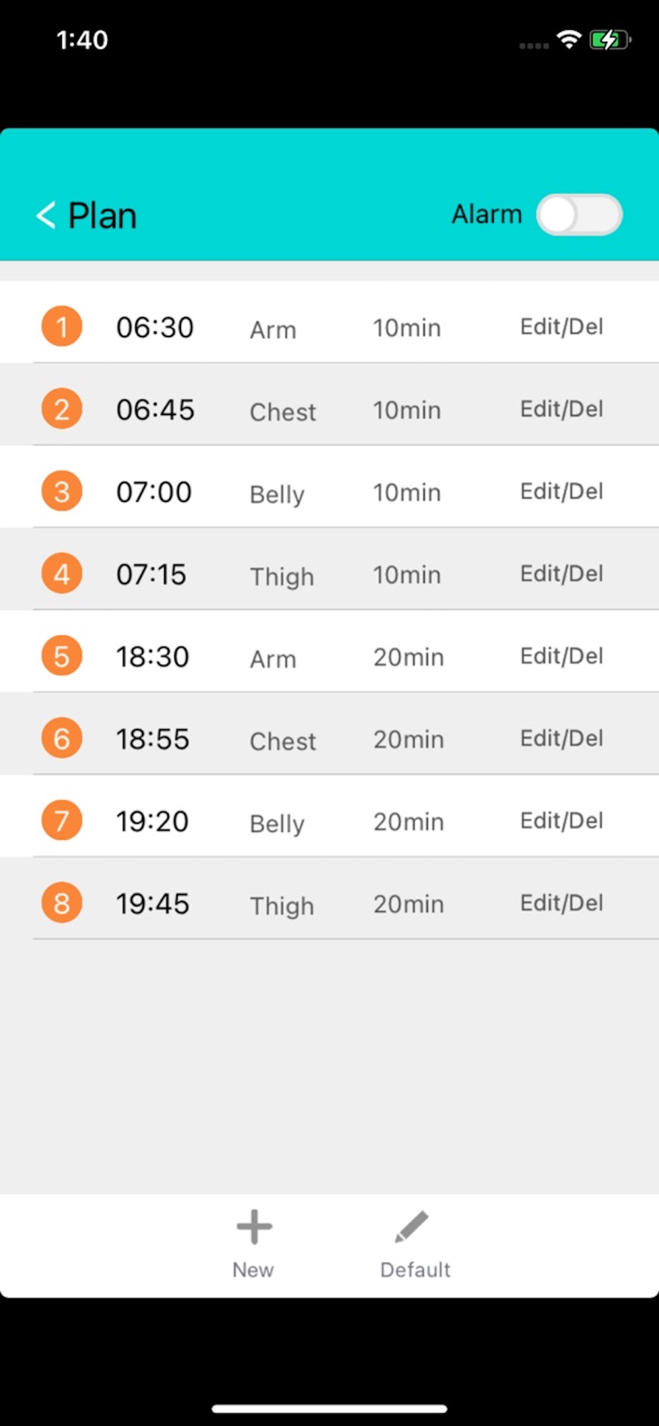 4. Start training: choose training part and training duration before the training, and the parameters can be adjusted during your training. It records your training when it ends. User can customize the training plan according to your own needs.