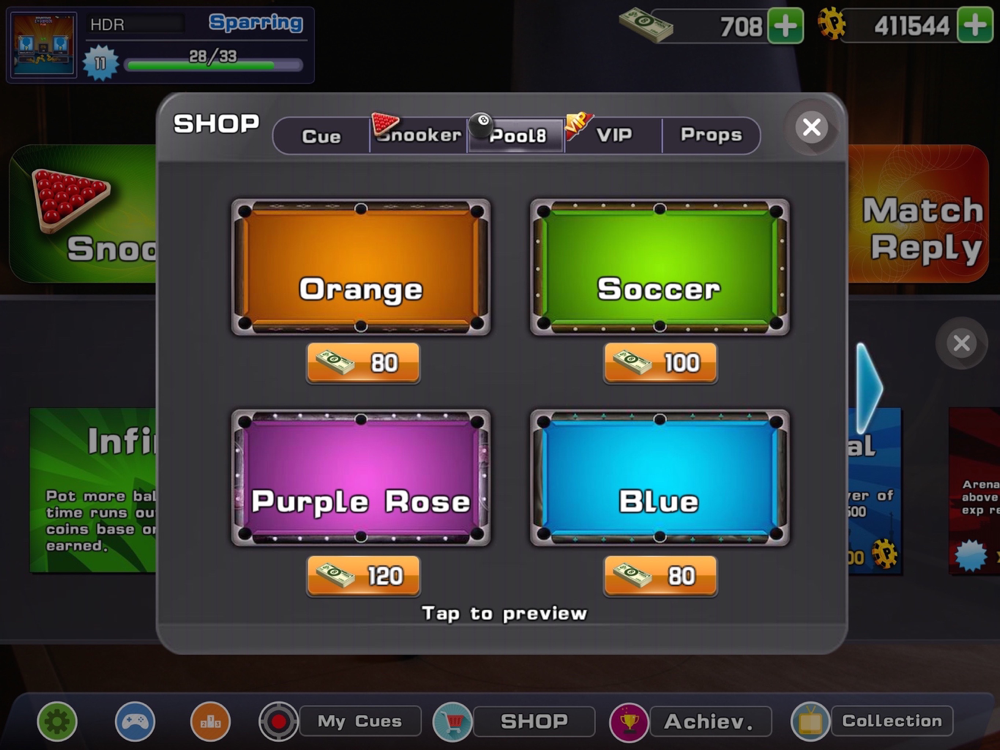 Random play with world wide snooker players.