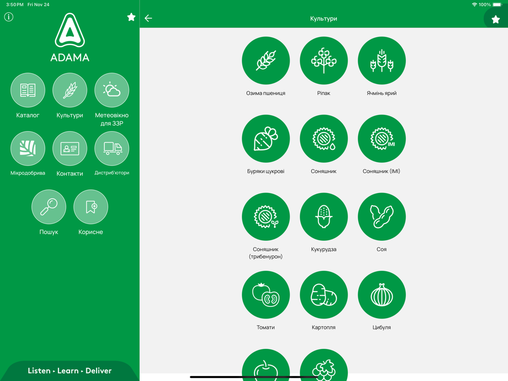 Мета ADAMA – надання простих рішень для захисту сільськогосподарських культур за допомогою унікальних продуктів та комбінацій діючих речовин. Ми дбаємо про ваш урожай як про свій власний.