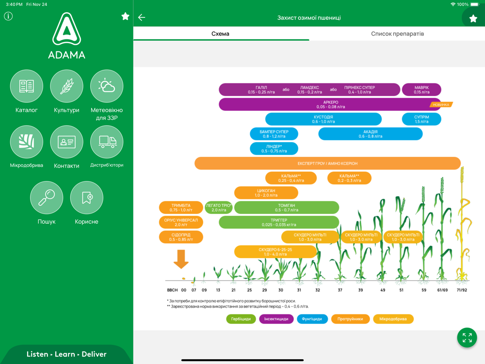 • Багатофункціональний пошук: за назвою культури, шкідника або хвороби, діючої речовини та назвою препарату;