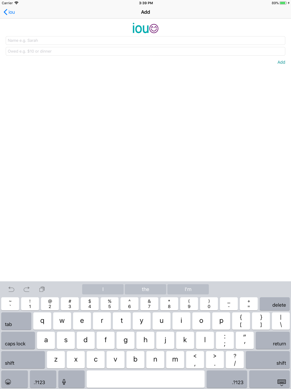 iou helps you keep track of what you owe and to who. Whether it is your turn to car pool or you borrowed $10 from a mate, iou can handle it all! You will be better able to keep track of promises, and thus ensure you don't frustrate your friends with your lack of memory. Impress your friends, and earn their trust with iou!