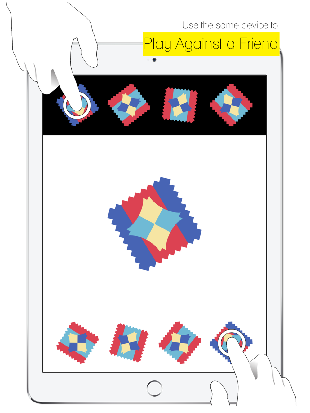 It's very simple, just touch the figure that appears on the center and match them. Try to achieve the highest score (in single player mode) or defeat your opponent (in two players mode) and see who's the fastest.