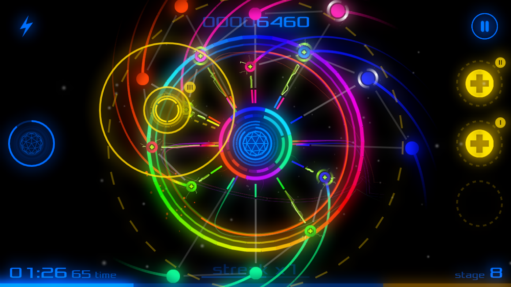 • Correctly catch Charged Orbs to obtain power-ups and use them to your advantage.