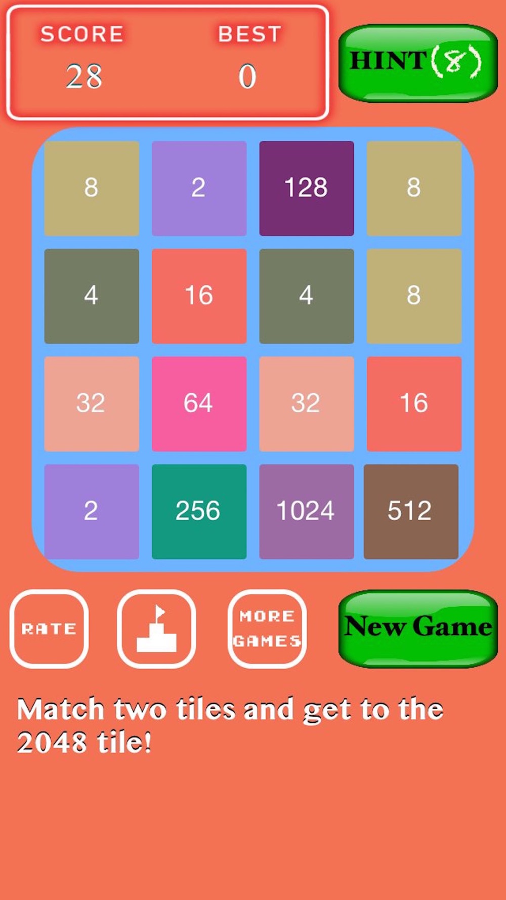 2048 Match is a trick memo board game which is inspired by 2048 and match memory strategy game mixed together. The 4x4-board puzzle contains multiples of 2 up to 2048. Your objective is to get to the 2048 tile. Sounds easy? Think again as you will have just few seconds to memorize the numbers and their positions.