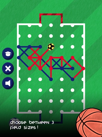 You and your opponent are alternately drawing a line on a grid-based field. When you reach a point where the ball has already been before you can draw another line! And whoever achieves to score a goal first, wins the game. You can play on three different field sizes and choose from three different difficulties.