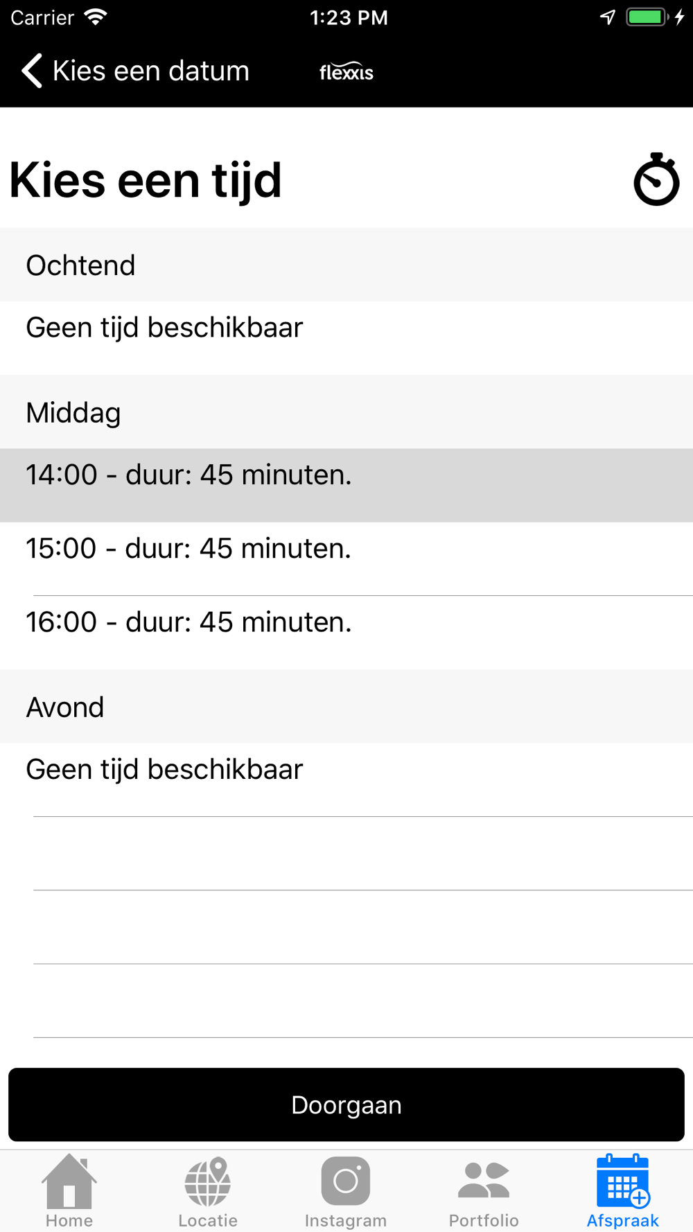De Flexxis Afspraken APP is de perfecte aanvulling op uw (online) afsprakenboek. Met dit unieke systeem is het mogelijk uw klanten via hun iPhone een afspraak te laten plannen wanneer het hun uitkomt! De App wordt voor uw salon gepersonaliseerd, inclusief uw logo, kleurstelling en foto’s van uw medewerkers.
