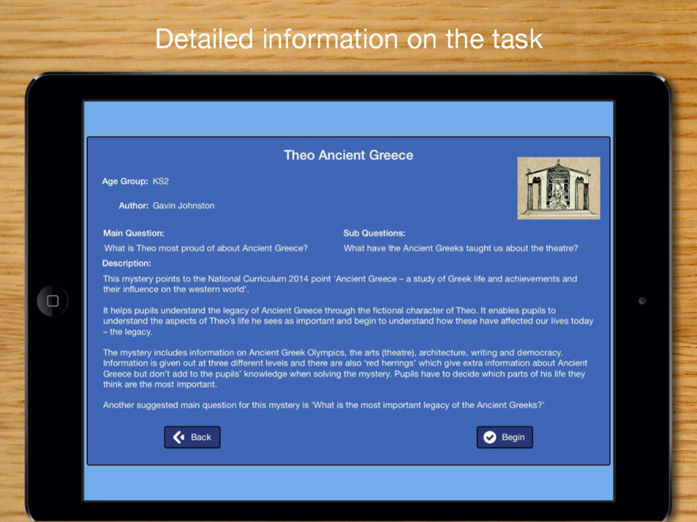 Digital Mysteries: Theo in Ancient Greece is a unique app in allowing pairs to work simultaneously on one iPad on a task mapped to the national History curriculum for England.