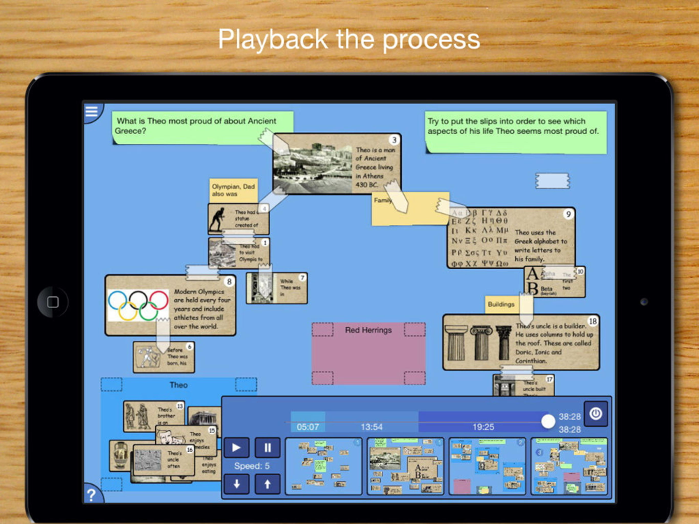 Users are given illustrated slips of information which they read, organise into groups and lay out across the screen. This is all to understand the legacy of Ancient Greece through fictional character Theo, his family, hobbies and interests.
